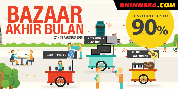 Program Bazaar Akhir Bulan kali ini memberikan discount kepada masyarakat yang gemar berbelanja online sampai 90% dari seluruh produk yang dijual oleh situs Bhinneka.Com. Dalam program Bazaar Akhir Bulan tidak hanya memberikan kepada masyarakat discount 90%, Bhinneka.Com memberikan promo extra eCoupon tambahan, terutama bagi member dapat menikmati promo extra eCoupon, dengan membeli barang yang sudah di diskon promo dan mendapatkan potongan dari penggunaan eCoupon. Tidak hanya itu, dari setiap pembelian barang masyarakat mendapatkan free gift dan penawaran menarik lainnnya.